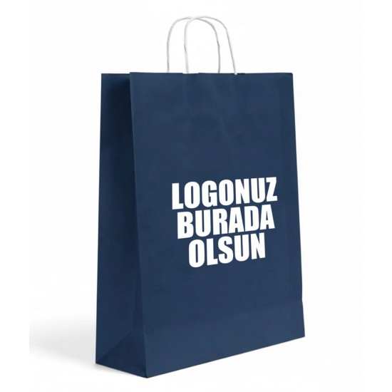 Burgu Saplı Renkli Kraft Kağıt Çanta Min 1000 Adet 25x12x31cm